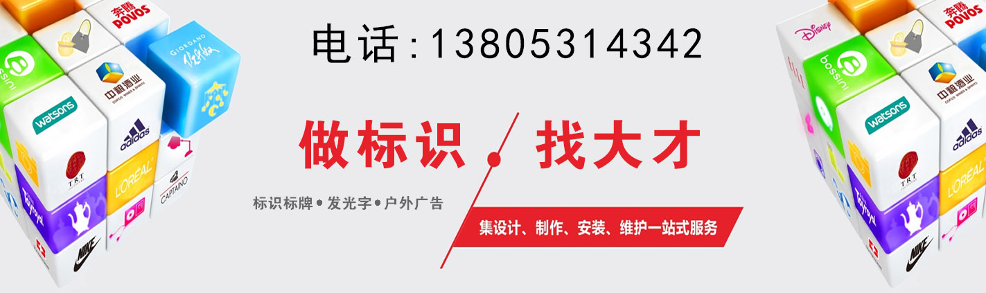 大才广告传媒是以广告字、发光字、标识标牌、LED冲孔发光字、不锈钢字,迷你字、水晶雕刻字等设计、制作工程安装服务为一体的广告标识工程公司。公司的产品覆盖:标牌、标识、标识牌、标示牌、酒店标牌、标识标牌、LED显示屏、公交站台、门头招牌、宣传栏、酒店标识、道路标识标牌、导视系···